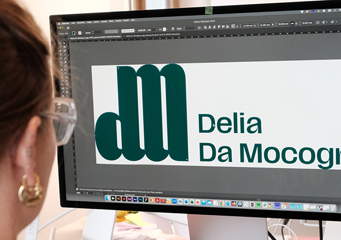 Für Delia haben wir als Sponsoring-Engagement ein eigenständiges Erscheinungsbild entwickelt, das ihre Persönlichkeit und ihren sportlichen Anspruch auf den Punkt bringt. Im Zentrum steht ein prägnantes Logo, bestehend aus einer Bildmarke und einer Wortmarke. Die Bildmarke – ein reduziertes, markantes «DM» – funktioniert sowohl eigenständig als auch im Zusammenspiel mit der Wortmarke «Delia Da Mocogno».