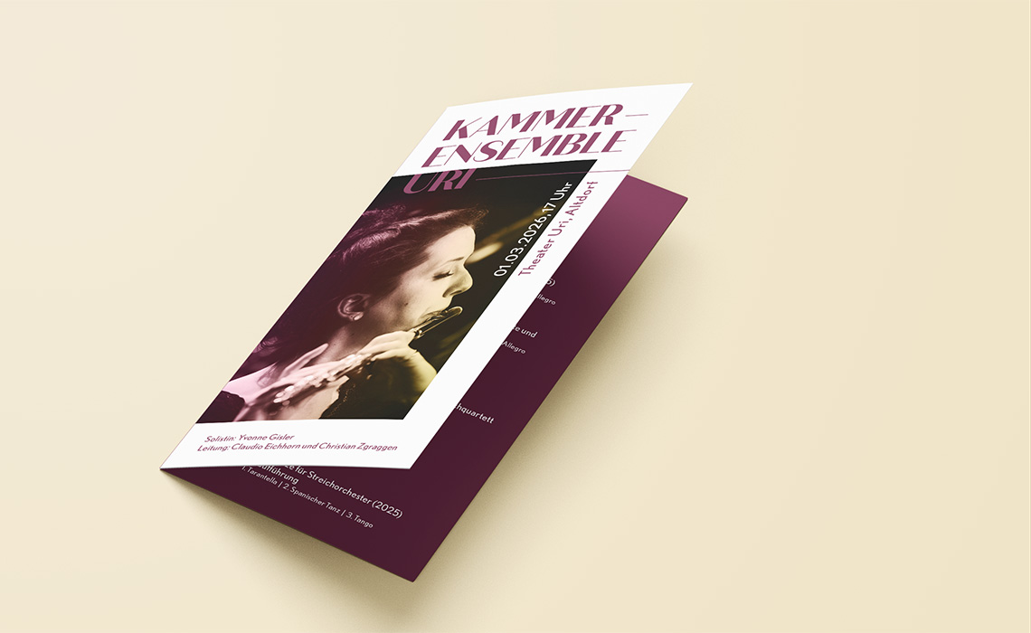 Wir mögen auch die leiseren Klänge und schätzen Kleinaufträge nicht minder als die grossen. Schon lange dürfen wir das Kammerensemble Uri, das Genepi Quartett und collegium musicum uri jeweils mit Plakaten, Inseraten und Konzertflyers unterstützen. Musik in unseren Herzen!