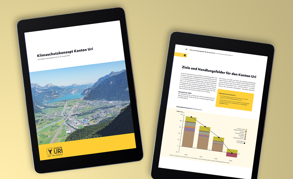 Die Schweiz ist leider nach wie vor Weltspitze: Hier wird weltweit am drittmeisten Abfall pro Kopf produziert. Das Urner Amt für Umweltschutz gibt der Öffentlichkeit Rat, wie Abfall vermieden oder rezykliert werden kann. Wir freuen uns, den Kunden in diesem wichtigen Thema seit langer Zeit zu unterstützen. Auch bei der Umfrage zur Urner Klimastrategie durften wir gestalterisch mitwirken. Klar, dass auch tinto die Klima- und Abfallziele mitträgt.