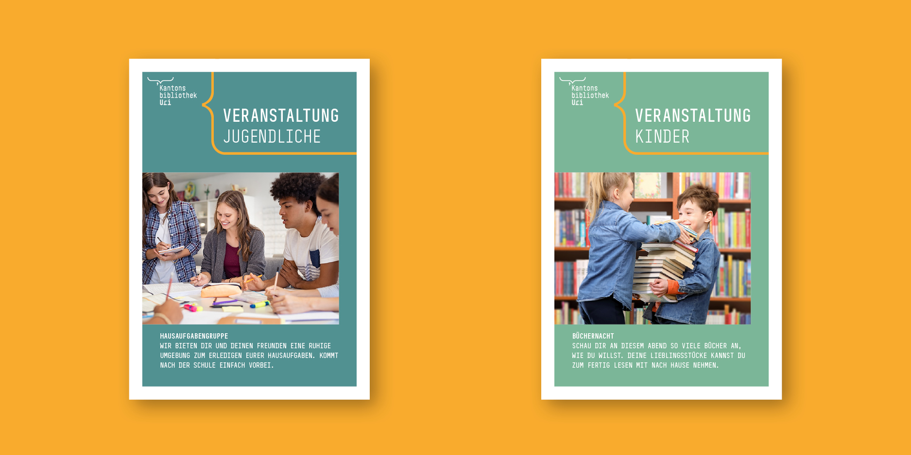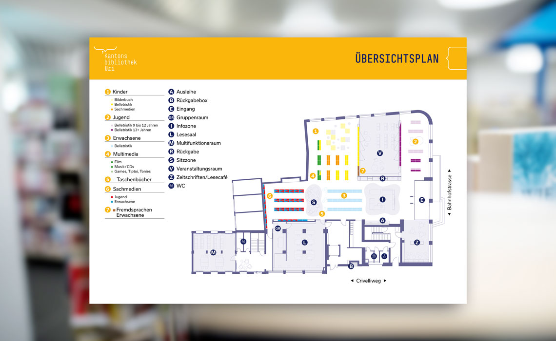 Zu ihrem 50-Jahr-Jubiläum erstrahlt die Kantonsbibliothek Uri 2021 gleich zweifach in neuem Glanz: Nach dem Umbau finden die rund 300’000 Bücher, Magazine und weitere Medien an der Altdorfer Bahnhofstrasse nun ein modernes Zuhause. Wir von tinto durften bei mit der eingängigen Signaletik mitwirken. Gleichzeitig erhält die KBU einen komplett neuen Auftritt – mit Augenzwinkern, themenorientierten Farben und einem unverkennbar eigenen Stil, der den zahlreichen Bibliothekfans auf Plakaten, Flyern und der Website begegnet.