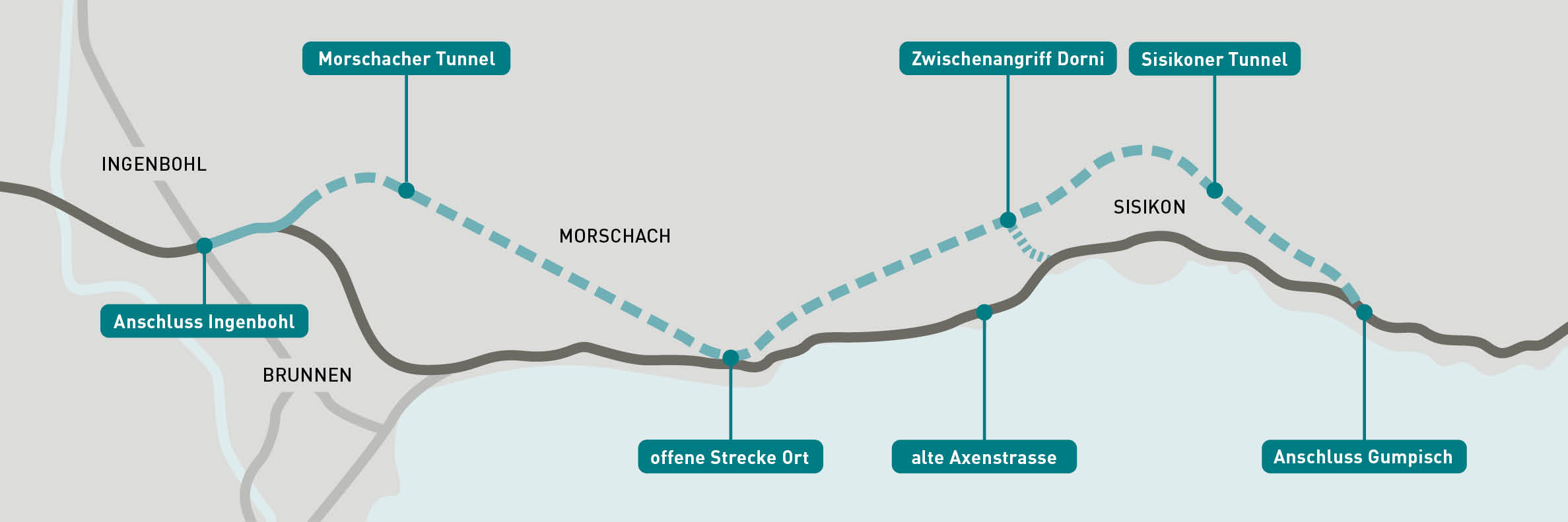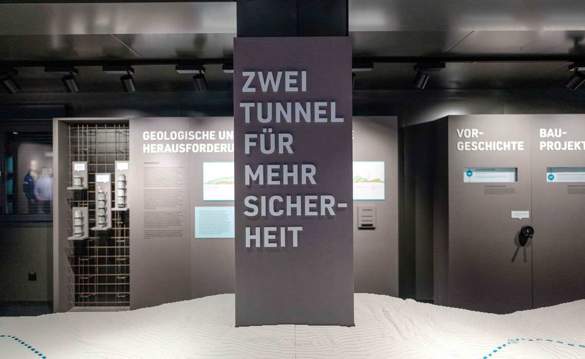 Die Axenstrasse erhält mit dem Sisikoner Tunnel und des Morschacher Tunnel eine neue Linienführung. Wir unterstützen die Kantone Uri und Schwyz seit 2012 in der Kommunikation und sind auch bei der Bauphase mit Freude an Bord. Dabei kümmern wir uns laufend um die Website, um das Periodikum Bau-Nachrichten, Präsentationen, Beschriftungen, Infotafeln und viele weitere Kommunikationsaktivitäten. Das Infocenter in Ingenbohl trägt ebenfalls die Handschrift von tinto – es bietet seit März 2025 spannende Einblicke in das Generationenprojekt.