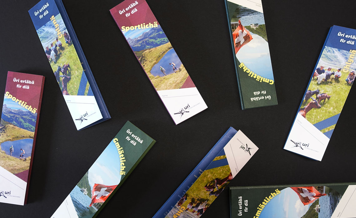 Uri ist eine Reise wert: Spannende Themenwege, kurzweilige Spielplätze, herausfordernde Wanderungen oder beste Unterhaltung in den Kulturhäusern. Um sowohl Einheimischen als auch Gästen die Vielfalt des Kantons mit seinen attraktiven Angeboten schmackhaft zu machen, setzte tinto die Erlebnisse in bunten Falzflyern fir diä Chlynä, Gmiätlichä und Sportlichä um.