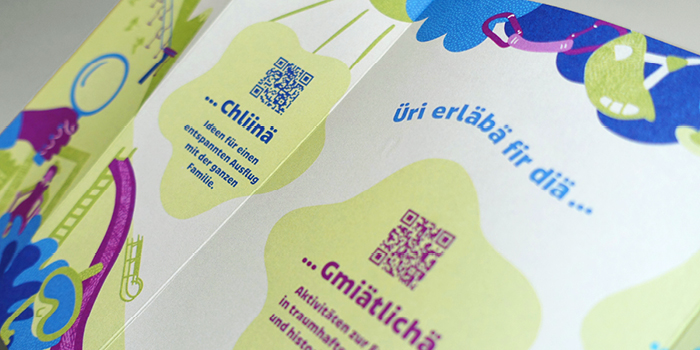 Uri ist eine Reise wert: Spannende Themenwege, kurzweilige Spielplätze, herausfordernde Wanderungen oder beste Unterhaltung in den Kulturhäusern. Um sowohl Einheimischen als auch Gästen die Vielfalt des Kantons mit seinen attraktiven Angeboten schmackhaft zu machen, setzte tinto die Erlebnisse in einem bunten Falzflyer fir diä Chlynä, Gmiätlichä und Sportlichä um.