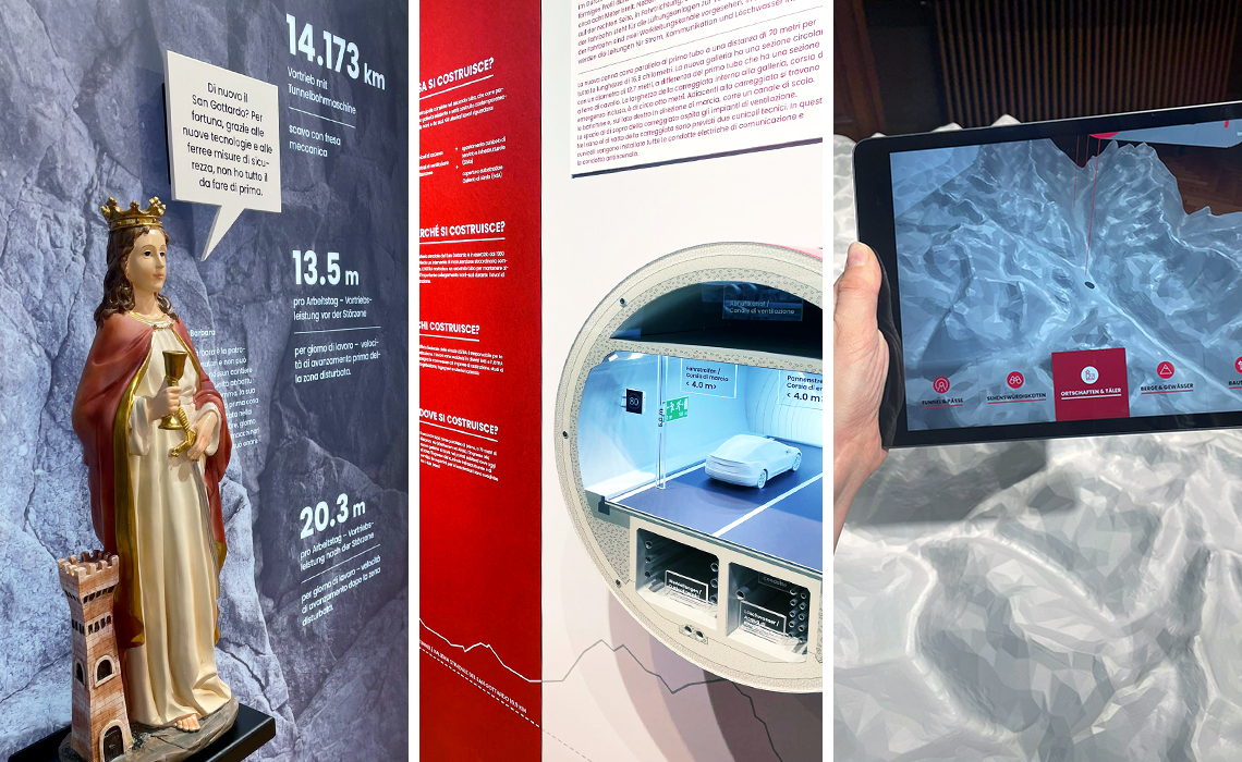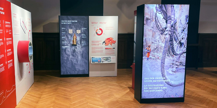 Am Gotthard wird wieder gebaut. Und wir sind mittendrin, statt nur dabei. Nicht mit Sprengstoff und Helm, sondern mit Kreativkraft und Organisationstalent. Gemeinsam mit der Agentur CRK und dem Tessiner Ingenieurbüro Comal.ch stellen wir die Gesamtkommunikation zum Bau der zweiten Gotthardröhre sicher. Ein erstes Highlight unserer Arbeit für das Bundesamt für Strassen ASTRA sind die Infozentren in Göschenen und Airolo.